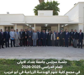 مجلس جامعة بغداد يعقد جلسته الأولى للعام الدراسي 2025–2026 في مجمع كلية الهندسة الزراعية في أبي غريبHuda Hadi05/09/2025