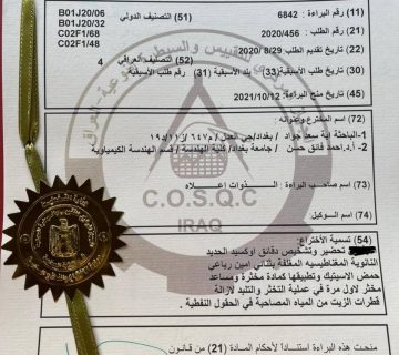 حصل التدريسي في قسم الهندسة الكيمياوية  كلية الهندسة الاستاذ الدكتور احمد فائق حسن العلوي على براءة اختراع جديدة  بعنوان (تحضير ... المزيد