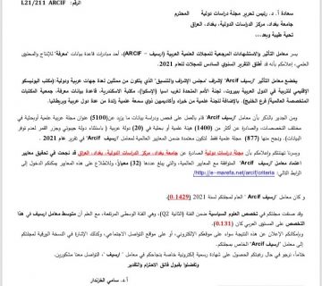 حصول مجلة صدرت عن مركز الدراسات الدولية على تصنيف ارسيف الدولي