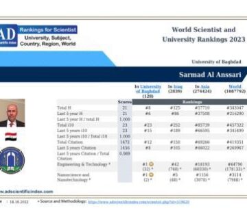 تدريسي من هندسة بغداد ضمن قائمة افضل الباحثين في العالم