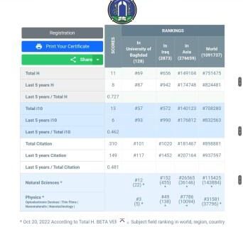 تدريسية في كلية العلوم تحصل على تصنيف عالمي متقدم في تخصص الفيزياء