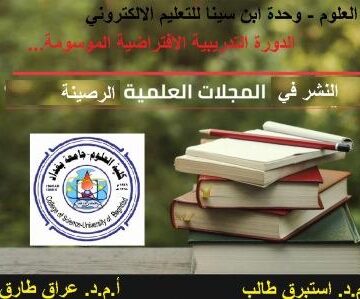 طريقة النشر في المجلات العلمية الرصينة توضحها دورة تدريبية اقامتها كلية العلومHuda Hadi12/05/2022 اقامت وحدة ابن سينا للتعليم الالكتروني بالتعاون مع وحدة التعليم المستمر في كلية العلوم بجامعة بغداد، الدورة التدريبية الافتراضية ... المزيد
