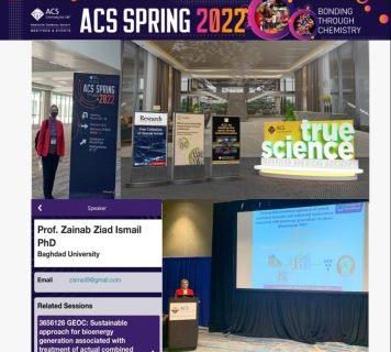 شاركت التدريسية في قسم الهندسة البيئية كلية الهندسة الاستاذ الدكتور زينب زياد اسماعيل بالمؤتمر النصف سنوي للجمعية الامريكية للكيمياء (American ... المزيد