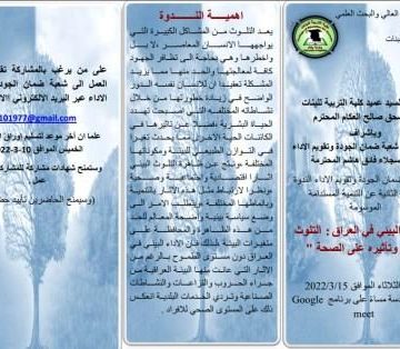 كلية التربية للبنات تقيم ندوة عن الواقع البيئي في العراقHuda Hadi04/04/2022أقامت كلية التربية للبنات شعبة ضمان الجودة ندوتها العلمية الألكترونية الموسومة ( الواقع البيئي في العراق : التلوث البيئي وتأثيره ... المزيد