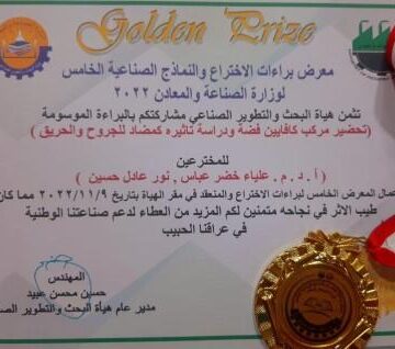 تدريسية وطالبة دراسات من كلية العلوم تحصل على براءة اختراع لعلاج الحروق والتهاباتهاHuda Hadi28/11/2022حصلت التدريسية في قسم الكيمياء الاستاذة المساعدة الدكتورة علياء خضر عباس و طالبة الدراسات العليا نور عادل حسين الجميلي على ... المزيد
