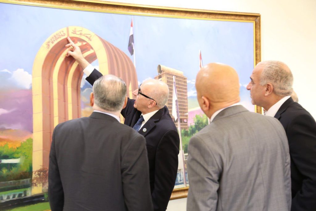 استقبلت جامعة بغداد وفداً رفيع المستوى يضم عدداً من رؤساء الجامعات العربية، برئاسة رئيس جامعة الحسين بن طلال في الاردن الاستاذ الدكتور عاطف الخرامشة ، في لقاء هدف إلى تعزيز التعاون الأكاديمي العربي ، بحضور رئيس جامعة بغداد الأستاذ الدكتور بهاء أبراهيم أنصاف، ومساعد رئيس الجامعة للشؤون العلمية الأستاذ الدكتور سهيل نجم عبد الله، ومدير قسم البعثات والعلاقات الثقافية الأستاذ الدكتور ايناس خليفة الشرقي .