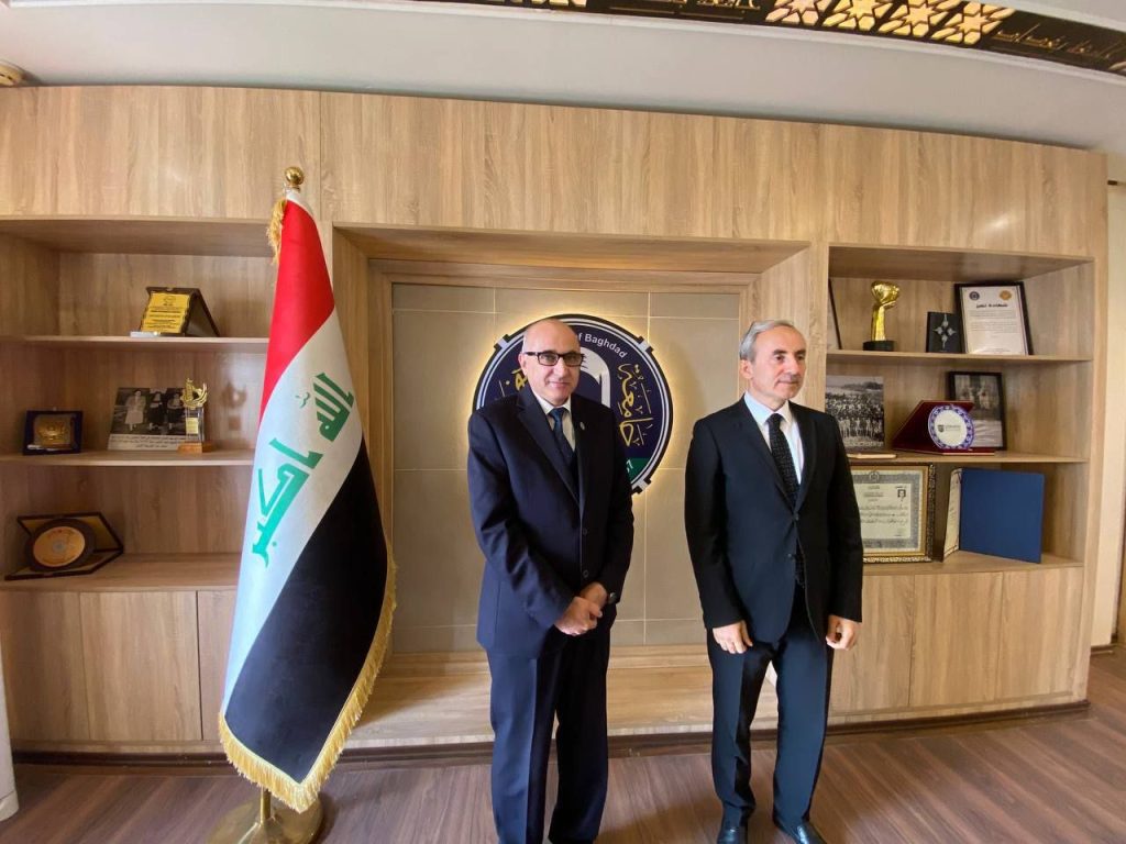 استقبلت جامعة بغداد وفداً أكاديمياً من جامعة غازي عنتاب للعلوم والتكنولوجيا الإسلامية التركية برئاسة رئيس الجامعة الدكتور شيموس دمير ، لبحث تعزيز العلاقات العلمية وفتح آفاق جديدة للتعاون الأكاديمي ، بحضور رئيس جامعة بغداد الاستاذ الدكتور بهاء أبراهيم إنصاف، ومساعد رئيس الجامعة للشؤون العلمية الاستاذ الدكتور سهيل نجم عبد الله، ومدير قسم البعثات والعلاقات الثقافية الاستاذ الدكتور ايناس خليفة الشرقي.