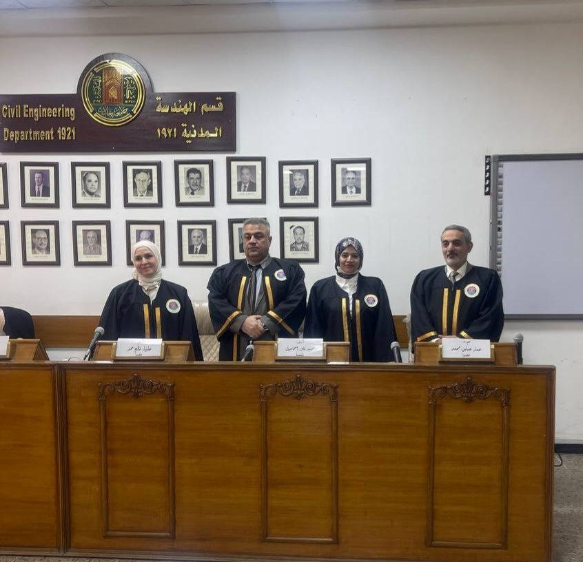 شهدت كلية الهندسة في جامعة بغداد المناقشة العلنية لطالبة الماجستير آيه كامل أسد من قسم الهندسة المدنية عن رسالتها الموسومة تحسين أداء الخرسانة الإسفلتية باستخدام مسحوق الصودا لجنين