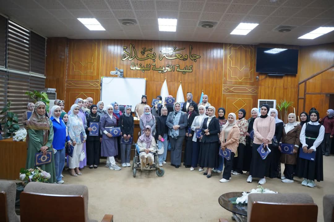 التقت عميدة كلية التربية للبنات الاستاذ المساعد الدكتورة أثمار شاكر مجيد الشطري بعدد من طالبات قسم الاجتماع واللغة الإنكليزية والاقتصاد المنزلي اللاتي شاركنُ في الاسبوع الارشادي التوعوي الذي اقيم في رحاب الكلية وحضر اللقاء معاون عميد للشؤون الادارية الاستاذ الدكتور احمد هاشم محمد وعدد من مدراء الشعب والوحدات .