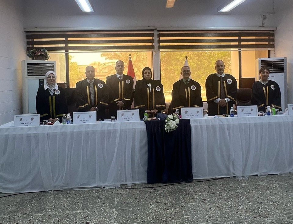 ترأس عميد كلية الهندسة الأستاذ الدكتور غسان حميد عبد المجيد لجنة مناقشة أطروحة الدكتوراه للطالبة إسراء صباح عباس من قسم الهندسة البيئية عن أطروحتها الموسومة بــ (( تقييم عملية التحفيز الضوئي لتحلل مبيد السلفوسلفورون في المياه الملوثة )).
