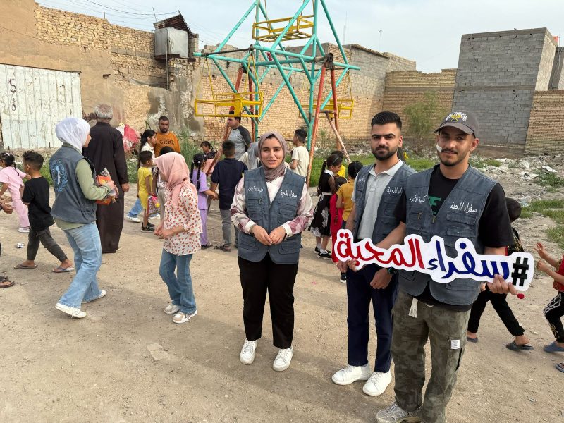 أطلق فريق سفراء المحبة من قسم الصحافة في كلية الإعلام بجامعة بغداد، حملة إنسانية لتوزيع الهدايا والألعاب على الأطفال في منطقة سبع البور، وذلك في أول أيام عيد الفطر المبارك، بهدف إدخال البهجة والسرور في نفوس الأطفال، لاسيما الأيتام وأبناء الأسر المتعففة.