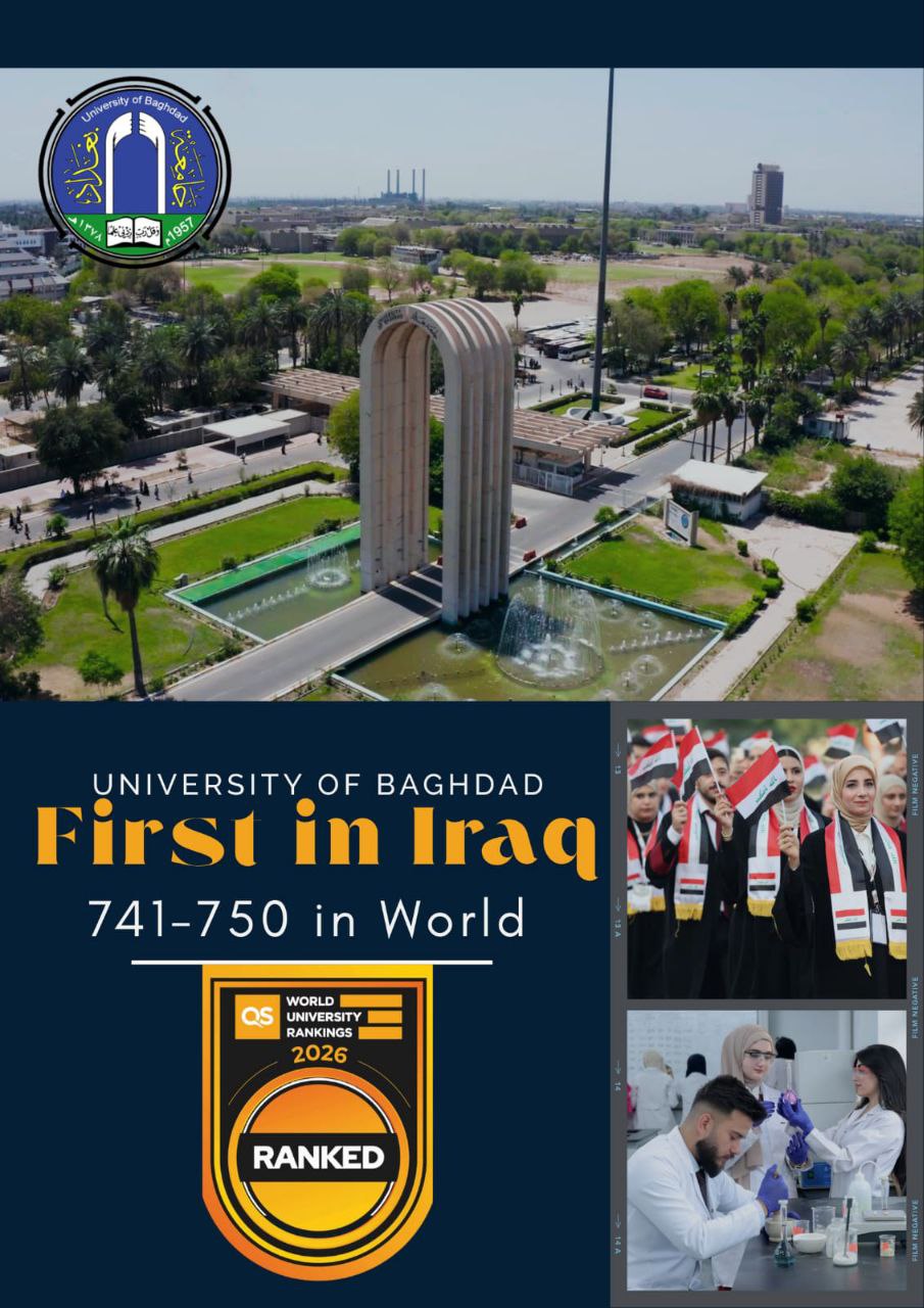 سجّلت جامعة بغداد إنجازاً نوعياً بدخولها الفئة (741–750) عالمياً في تصنيف QS World University Rankings 2026 ، متقدمةً عن موقعها في العام الماضي (801–850)، لتؤكد مكانتها الرائدة محلياً وتُحافظ على صدارتها بين الجامعات العراقية المشاركة.