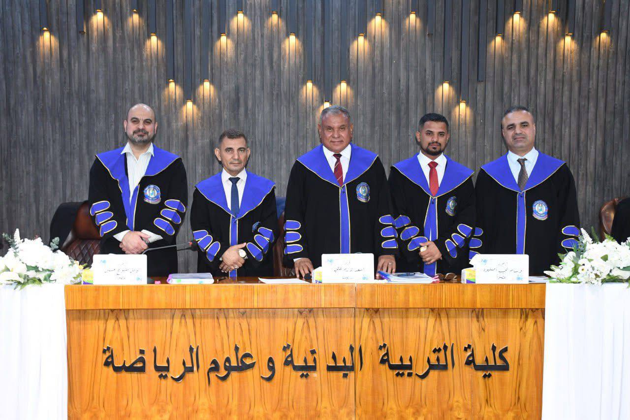 ناقشت كلية التربية البدنية و علوم الرياضة في جامعة بغداد رسالة ماجستير للطالب (مصطفى عادل غدير) بعنوان (تحليل فاعلية الأداء المهاري لحراس مرمى المنتخب العراقي ومقارنته بحراس المنتخبات الحاصلة على المراكز الأربعة الأولى في نهائيات أسيا 2024 بكرة قدم الصالات