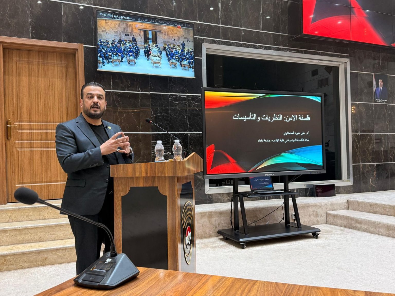 وفي ختام المحاضرة، أشار إلى أن فلسفة الأمن في العراق اليوم تهدف إلى تحقيق التوازن بين حماية الدولة وضمان حقوق المواطنين، في ظل ظروف داخلية صعبة وتحديات إقليمية معقّدة.