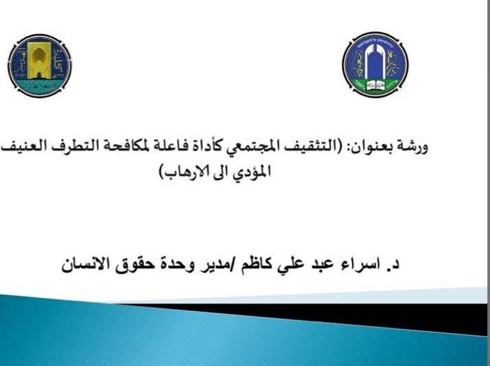 وتناولت الورشة عدة محاور حقوقية ومجتمعية من بينها تأثير العوامل النفسية والاجتماعية على سلوك الشباب وتحليل فقدان الانتماء المؤسسي واستعراض جهود الدولة العراقية والمنظمات الدولية في مكافحة التطرف إلى جانب دور الأستاذ الجامعي والطلبة في ترسيخ ثقافة الحوار والاعتدال.