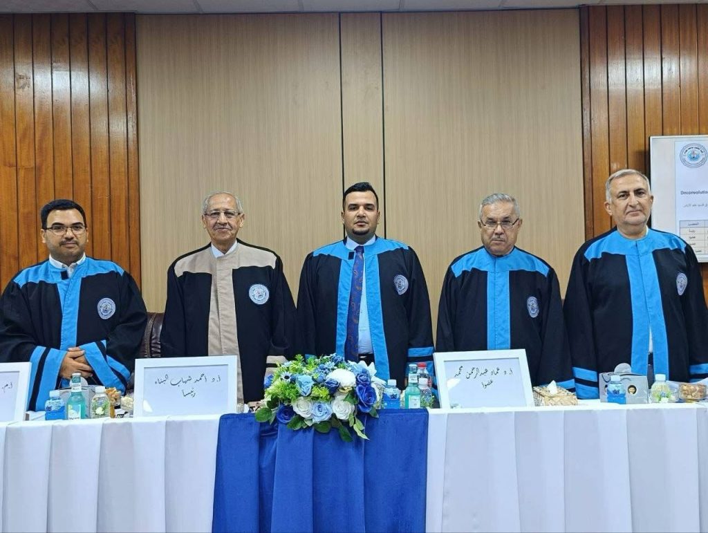 ناقش قسم علم الأرض بكلية العلوم في جامعة بغداد، رسالة الماجستير الموسومة “تطبيق إزالة التلفلفات بطريقتي فينر و السطح المتسق في معالجة المعطيات على خط زلزالي (٢D) في شمال غرب الصحراء في العراق) للطالب زياد حيدر خلف .