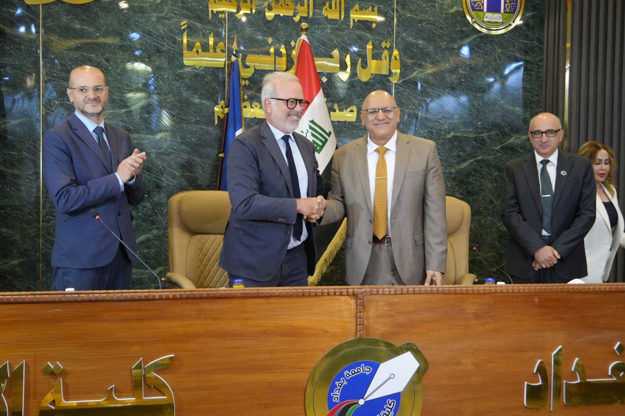 وفي كلمته، أشاد عميد الكلية الأستاذ الدكتور عمار طاهر محمد بالدعم الكبير الذي تقدمه وزارة التعليم العالي والبحث العلمي، مشيرًا إلى أن الوزارة كانت حريصة على تذليل العقبات أمام تطور التعليم الإعلامي، ما أسهم في إرساء هذا التعاون النوعي مع شركاء دوليين.
