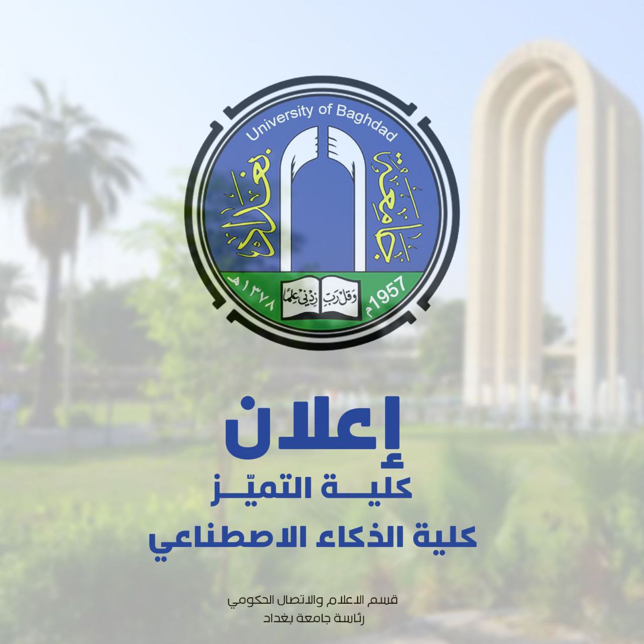 تُعلن جامعة بغداد عن إجراء مقابلات القبول للوجبة الثالثة من الطلبة المتقدمين إلى الدراسة الأولية في كليتي التميّز والذكاء الاصطناعي للعام الدراسي 2025-2026 .