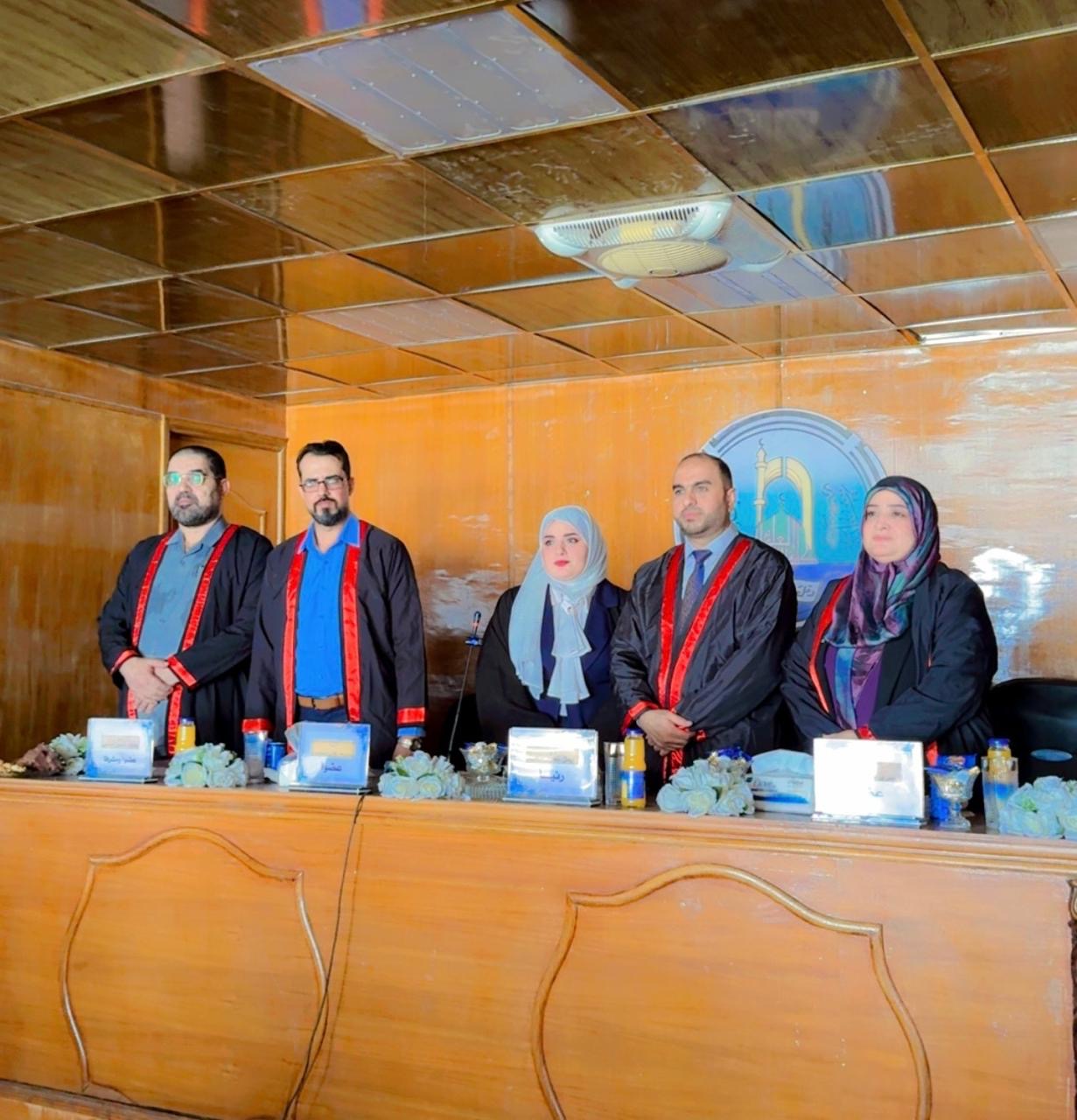 ناقشت كلية العلوم الإسلامية في جامعة بغداد رسالة الماجستير الموسومة (البحث الصرفي عند الشربيني في كتابه فتح الخالق المالك في حل ألفاظ ألفية ابن مالك) للطالبة إسراء أحمد عبد الحسين.