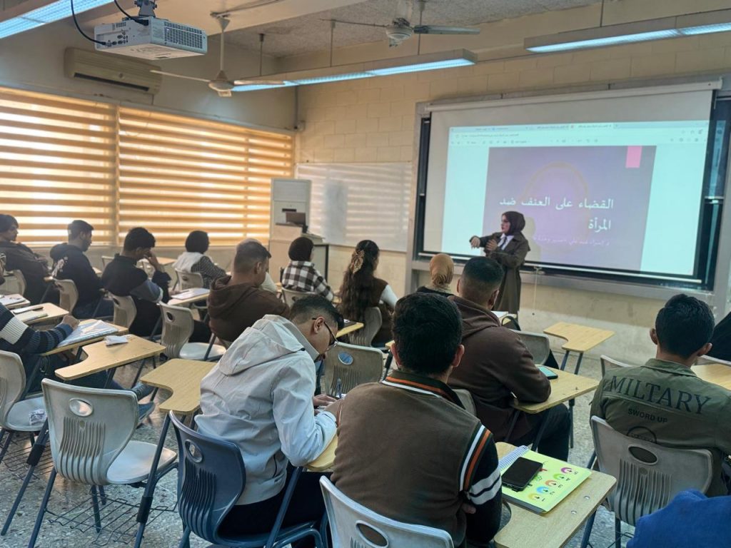 قدّمت الورشة مديرة وحدة حقوق الإنسان الدكتورة إسراء عبد علي واستهدفت طلبة المرحلة الثانية في قسم هندسة المساحة حيث تناولت مجموعة من المحاور التي ركّزت على تعزيز كرامة المرأة وضمان حقوقها داخل بيئة جامعية آمنة، فضلاً عن ترسيخ قيم الاحترام والمساواة ونشر مبادئ اللاعنف في الأسرة والمجتمع، بهدف بناء جيل واعٍ قادر على نبذ العنف والتمييز.