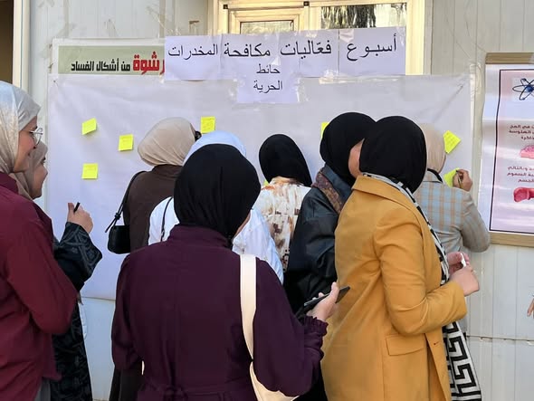 وتأتي هذه المبادرة ضمن الجهود المستمرة التي تبذلها الشعبة لنشر الرسائل التوعوية وتعزيز ثقافة الوقاية بين الطالبات، ولا سيّما في ما يتعلّق بالظواهر السلبية الدخيلة على المجتمع الجامعي، حيث تحوّلت تلك المشاركات إلى رسائل توعوية مؤثرة موجّهة لكل من يطّلع عليها، تدعو إلى الالتزام بالسلوكيات الإيجابية والابتعاد عمّا يضرّ بصحة الإنسان وسلامته وقد لاقت الفعالية تفاعلاً واضحًا من قبل الطالبات والمنتسبات، اللواتي عبّرن من خلال مشاركتهن عن دعمهن لكل مبادرة تسهم في حماية المجتمع الجامعي، وترسيخ قيم الوعي والمسؤولية الجماعية، والعمل على توفير بيئة تعليمية آمنة وخالية من المخدرات.