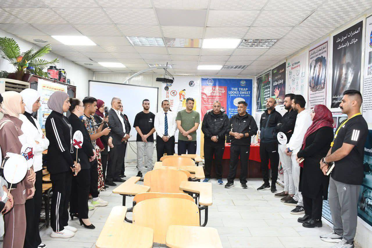 ضمن البرامج التوعوية التي تتبناها كلية التربية البدنية وعلوم الرياضة في جامعة بغداد، نظّمت المجموعة العلمية لقسم اللغة الإنجليزية معرضًا توعويًا حمل شعار (كلا للمخدرات) بحضور عميد الكلية الأستاذ الدكتور صباح قاسم خلف و معاوني العميد للشؤون العلمية والإدارية ورئيس فرع العلوم النظرية وأمين مجلس الكلية ومسؤول شعبة الإرشاد التربوي في جامعة بغداد ومسؤول وحدة الإرشاد التربوي في الكلية وعدد من التدريسيين والطلبة.