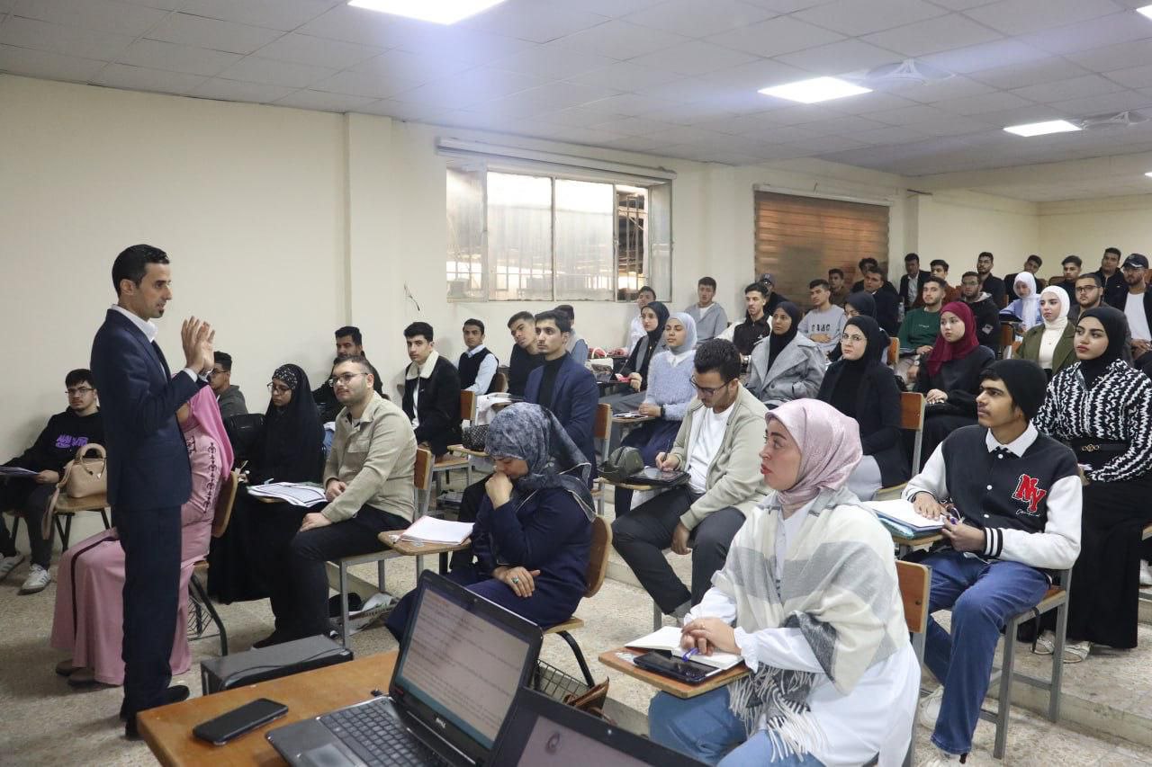 نظمت وحدة الإرشاد النفسي والتوجيه التربوي ورشة توعوية متخصصة لطلبة المرحلة الأولى بعنوان (سلوك الطالب الجامعي)، ضمن فعاليات أسبوع الإرشاد النفسي، قدّمها الأستاذ المساعد الدكتور إياد ماجد موسى، رئيس فرع أساسيات التمريض، بحضور عدد من طلبة الكلية.