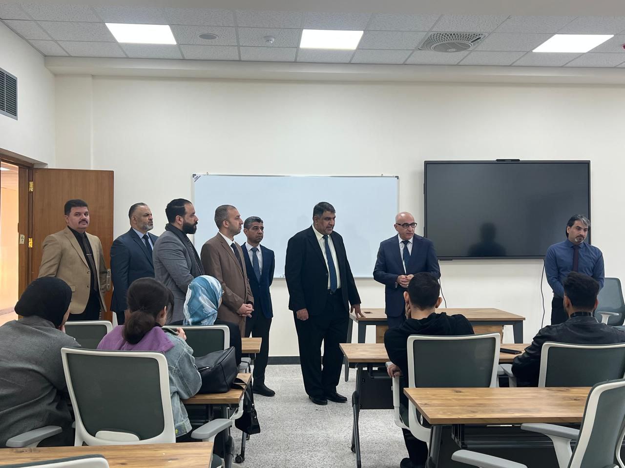وخلال جولته داخل الأقسام والمختبرات، التقى رئيس الجامعة بعدد من الطلبة واستمع إلى ملاحظاتهم واحتياجاتهم، مؤكداً حرص الجامعة على توفير بيئة تعليمية حديثة تدعم تطوير المهارات التقنية وتعزز مخرجات التعليم العالي، موجهاً في الوقت نفسه الى ضرورة الاستمرار في تحديث المختبرات وتوفير المتطلبات الداعمة لمسار التحول الرقمي والابتكار في مجالات الذكاء الاصطناعي.