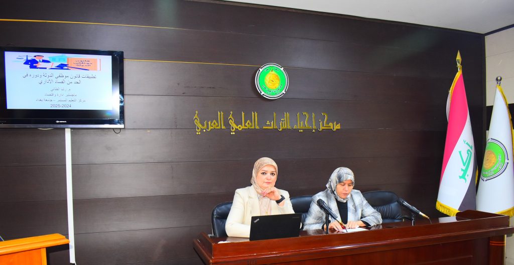 نظّم مركز إحياء التراث العلمي العربي في جامعة بغداد ورشة عمل خارج الخطة بعنوان (تطبيقات قانون انضباط موظفي الدولة ودوره في الحد من الفساد الإداري) وذلك بمشاركة نخبة من المختصين القانونيين والإداريين بهدف تعزيز الوعي التشريعي والارتقاء بمستوى النزاهة في العمل الحكومي.