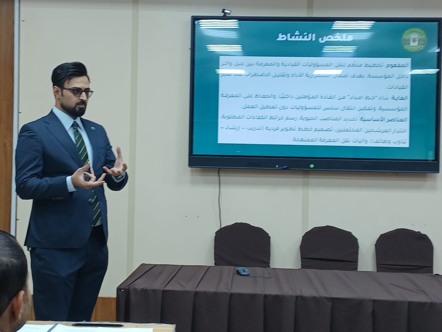 نظّمت وحدة التعليم المستمر بالتعاون مع شعبة الدراسات الأولية في كلية الآداب- جامعة بغداد ورشةً تدريبية بعنوان (فلسفة تولي المناصب: انتقال سلس عبر الأجيال الإدارية)، قدّمها المدرس المساعد أحمد حامد عزيز، بحضور عدد من الأساتذة والموظفين والطلبة.