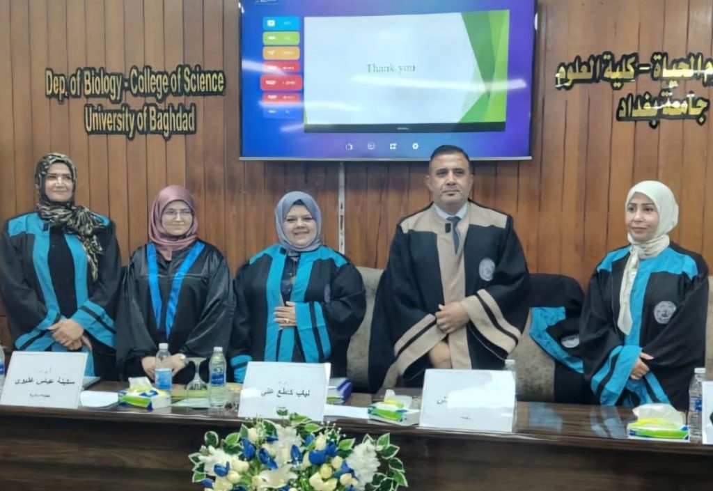 ناقش قسم علوم الحياة بكلية العلوم في جامعة بغداد، رسالة الماجستير الموسومة (دراسة تصنيفية لمراتب ذوات الفلقة الواحدة البرية النامية بالاعتماد على صفات الأجزاء التكاثرية) للطالبة فاطمة الزهراء محمد جاسم.