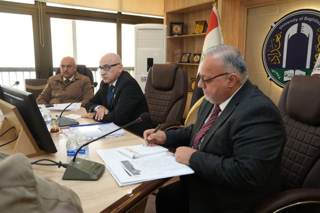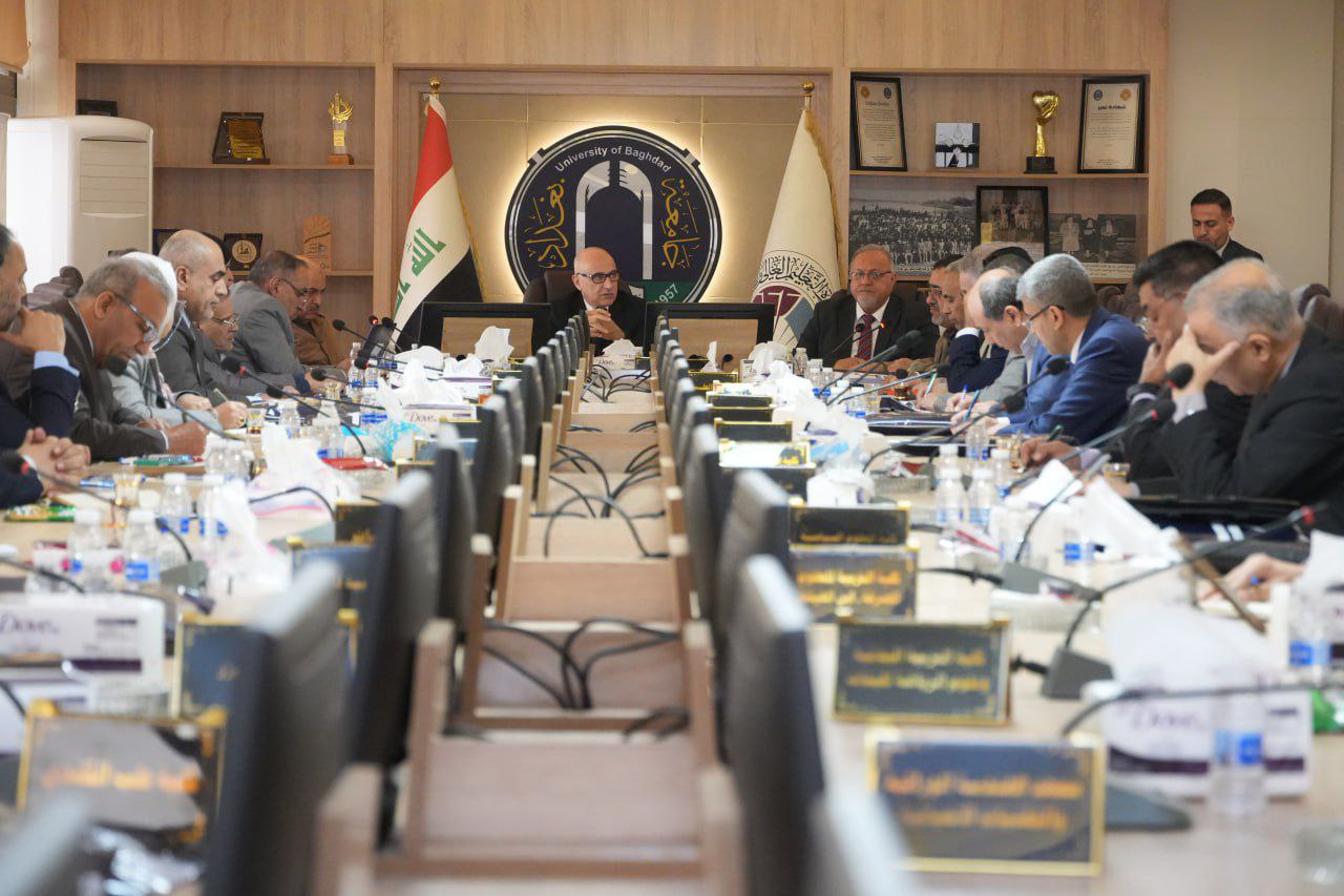 عقد مجلس جامعة بغداد جلسته السابعة برئاسة الأستاذ الدكتور بهاء إبراهيم إنصاف ، حيث جرى خلال الجلسة استعراض جملة من التوجيهات التنظيمية والإدارية الهادفة إلى تعزيز الأداء المؤسسي والارتقاء بواقع العمل الجامعي.