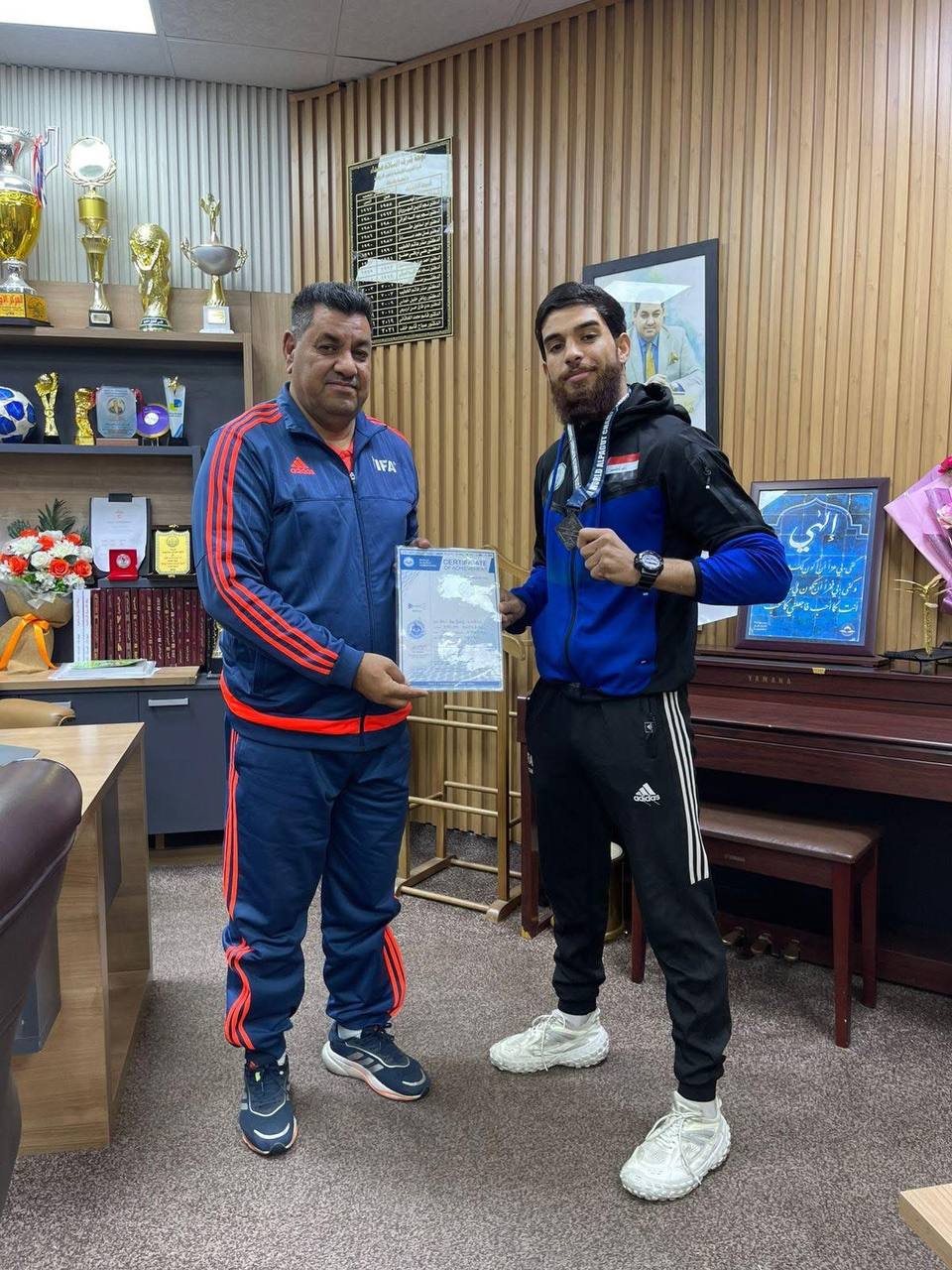 استقبل عميد كلية التربية البدنية و علوم الرياضة في جامعة بغداد الأستاذ الدكتور صباح قاسم خلف الطالب علي اكبر صباح بعد تحقيقة إنجازًا مميزًا بحصوله على المركز الثاني في بطولة العالم للباغوث، التي أُقيمت في تركيا بمشاركة نخبة من المتنافسين من مختلف دول العالم.