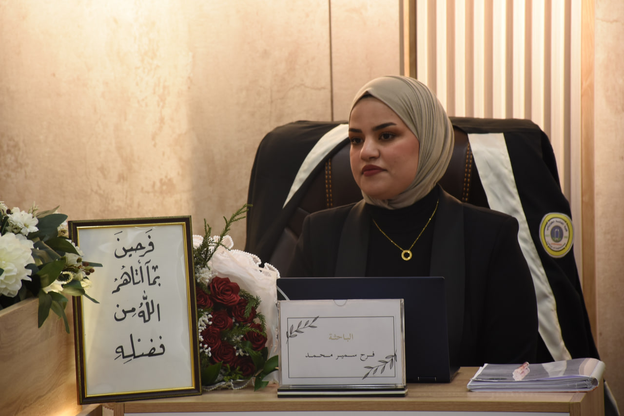 ناقش قسم الهندسة الكيميائية الأحيائية في كلية الهندسة الخوارزمي في جامعة بغداد، رسالة الماجستير الموسومة (تصنيع الجسيمات النانوية المدعَّمة بطريقة خضراء كتطبيق لإزالة الملوِّثات من المحاليل المائية) للطالبة فرح سمير محمد.