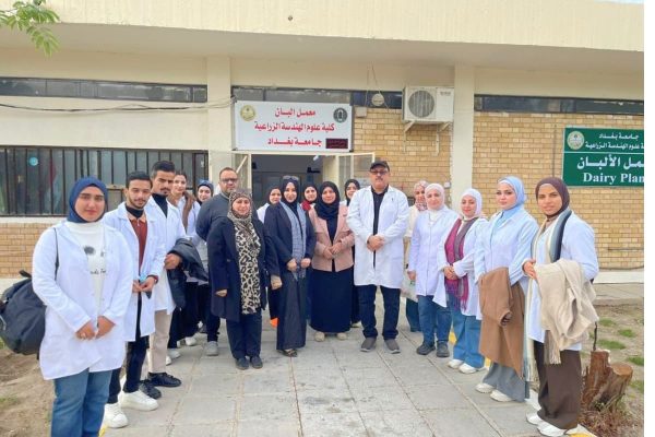 ضمن إطار تعزيز الجانب العملي وربط المعرفة النظرية بالتطبيقات الصناعية، نظّم قسم علوم الأغذية في كلية علوم الهندسة الزراعية – جامعة بغداد سفرة علمية لطلبة المرحلة الثالثة إلى معمل ألبان الكلية الكائن في موقع أبي غريب، وذلك ضمن متطلبات مادتي هندسة الغذاء وهندسة معامل الأغذية والألبان الجزء العملي، بإشراف كل من الأستاذ الدكتورة شيماء سعدي لفتة رئيس القسم والأستاذ المساعد الدكتورة صبا جعفر، والمدرس الدكتورة هند كمال علي، والمدرس المساعد فراس أحمد صالح، وكان في استقبال الوفد م.م. علي بشير مدير المعمل.