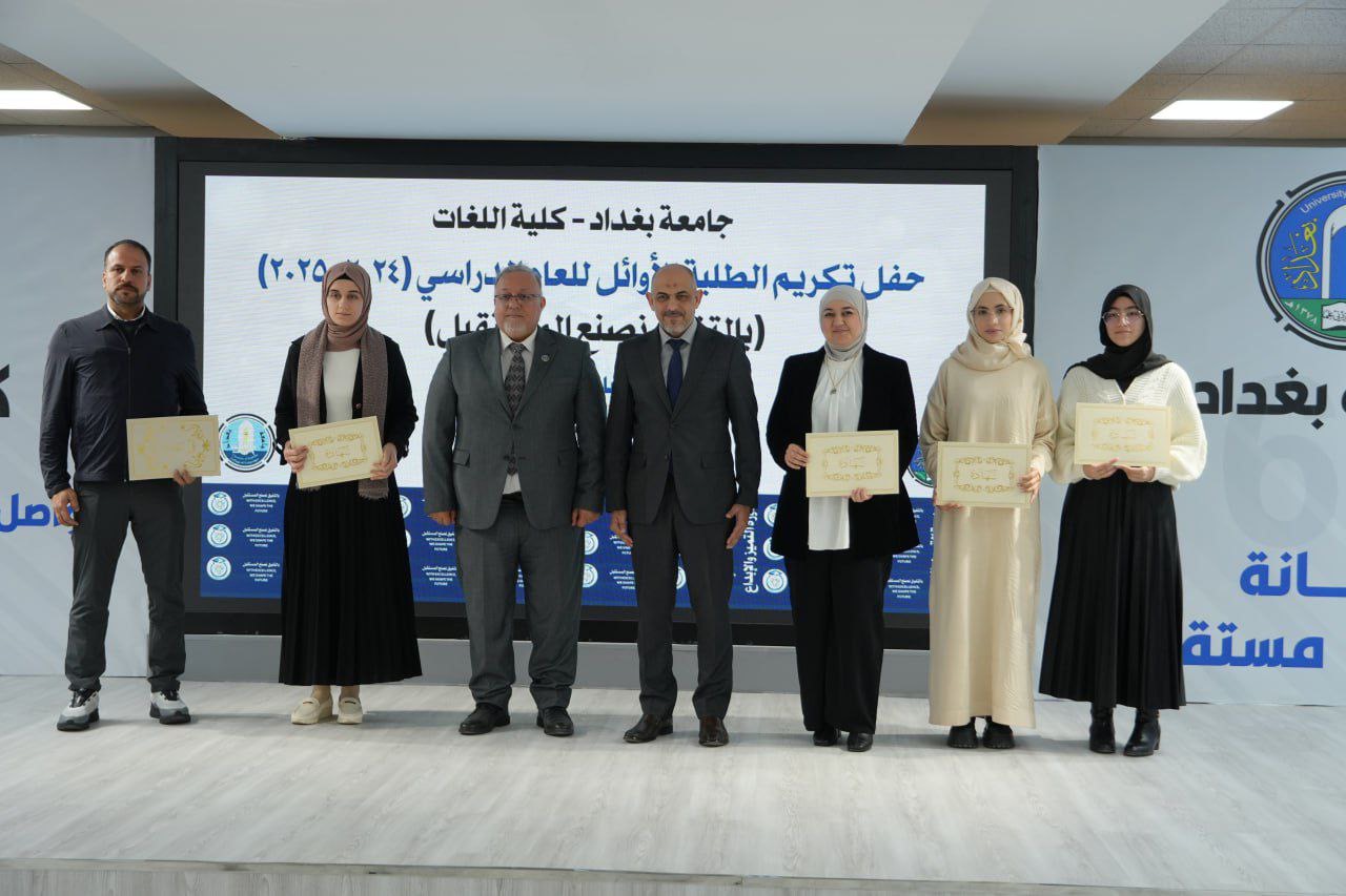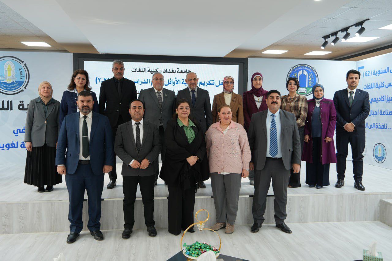 احتفت كلية اللغات في جامعة بغداد، بطلبتها الأوائل للعام الدراسي 2024–2025، خلال حفل رسمي أُقيم على قاعة المؤتمرات في الكلية، بحضور الأستاذ الدكتور رغد عبد الرزاق الهاشمي، مساعد رئيس جامعة بغداد للشؤون الإدارية والمخول بتسيير شؤون الجامعة، وعميد كلية اللغات الأستاذ الدكتور علي عدنان مشوش، وأعضاء الهيئة التدريسية والمنتسبين والطلبة.