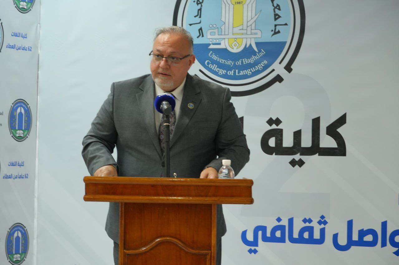 من جانبه، أكد عميد كلية اللغات الأستاذ الدكتور علي عدنان مشوش، أن هذا الحفل يأتي انسجامًا مع توجهات جامعة بغداد في دعم التفوق العلمي وتشجيع الطلبة المتميزين، إلى جانب تعزيز البنية الخدمية والإدارية بما يواكب متطلبات العملية التعليمية.