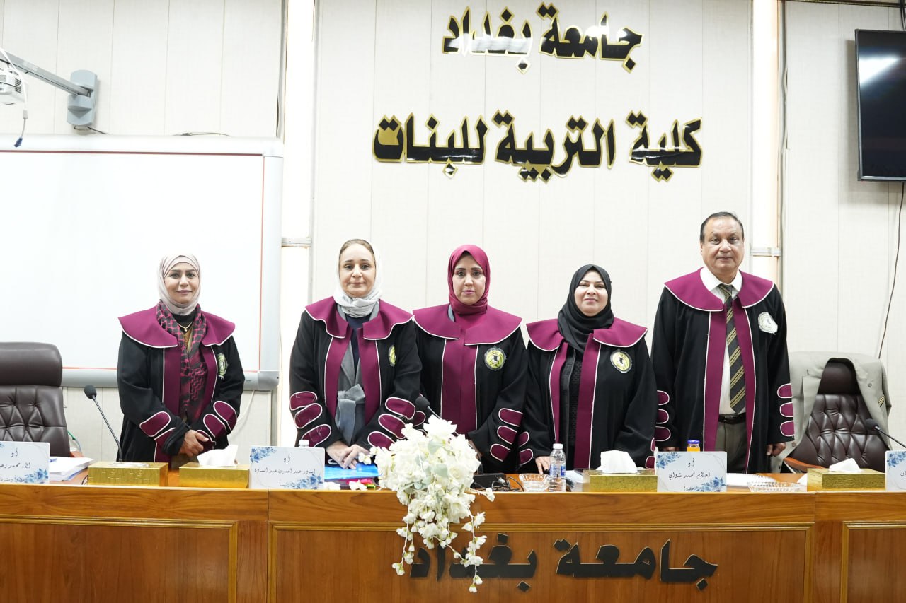 شهدت كلية التربية للبنات المناقشة العلنية لطالبة الماجستير سناء جواد محمد من قسم الاجتماع، عن رسالتها الموسومة (السياسة التربوية وإدماج ذوي الهمم – دراسة ميدانية اجتماعية في مدينة بغداد/ المدارس الحكومية أنموذجًا)).