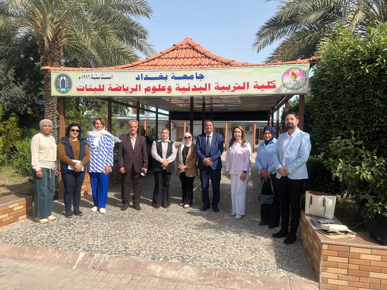 استقبلت عميدة كلية التربية البدنية وعلوم الرياضة للبنات بجامعة بغداد، الأستاذ الدكتورة فاطمة عبد مالح، وفود لجان التوأمة من كليتي المنصور والسلام الأهلية، في خطوة استراتيجية تهدف إلى تعزيز أطر التعاون العلمي المشترك بما يتماشى مع أهداف التنمية المستدامة، ولا سيما الهدف الرابع المتمثل في(التعليم الجيد)والهدف السابع عشر المعني ب(عقد الشراكات لتحقيق الأهداف), وقد شهد اللقاء تأكيداً على أهمية التكامل بين المؤسسات التعليمية الحكومية والأهلية لتبادل الخبرات وتطوير المناهج الدراسية، بما يضمن رفع كفاءة المخرجات الأكاديمية في تخصصات التربية البدنية وعلوم الرياضة.