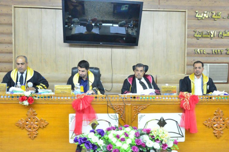 شهدت كلية التربية ابن رشد للعلوم الانسانية بجامعة بغداد مناقشة رسالة ماجستير(كتاب المنفلوطي (ت 1342هـ – 1924 م (دراسة نصية) للطالبة سارة صالح عبد عون من قسم اللغة العربية تخصص( لغة ) وبإشراف الاستاذ المساعد الدكتور نعمه دهش فرحان .