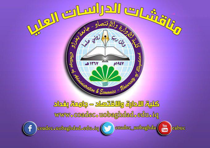 شهدت كلية الادارة والاقتصاد جامعة بغداد مناقشة رسالة ماجستير في تخصص الاقتصاد للطالب (صبيان طارق سعيد) عن رسالته الموسومة (الشمول المالي في العراق وتأثيرهُ في دعم الاستقرار المصرفي في ظل نظام الإنذار المبكر للأزمات المصرفية )