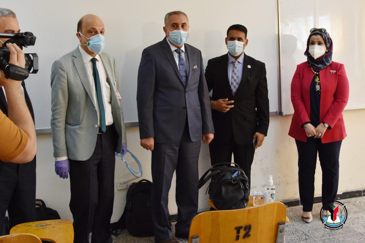 وفي الجانب الوقائي والصحي لاستضافة الامتحانات، قامت كلية العلوم بفحص الطلبة حراريا قبل دخولهم الامتحان واجراء تعفير القاعات الدراسية وتهيئة الاجواء الصحية المناسبة قبل بدءها، عبر اتباع التباعد بين الطلبة والزامهم بارتداء الكمامات وايجاد منافذ للتهوية، تحقيقا لشروط السلامة الصحية والوقائية التي اقرتها الجهات المعنية في اللجنة العليا لخلية الازمة والحد من جائحة كورونا.