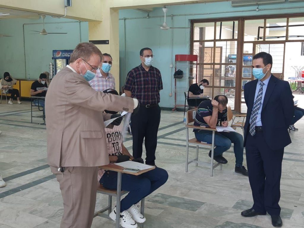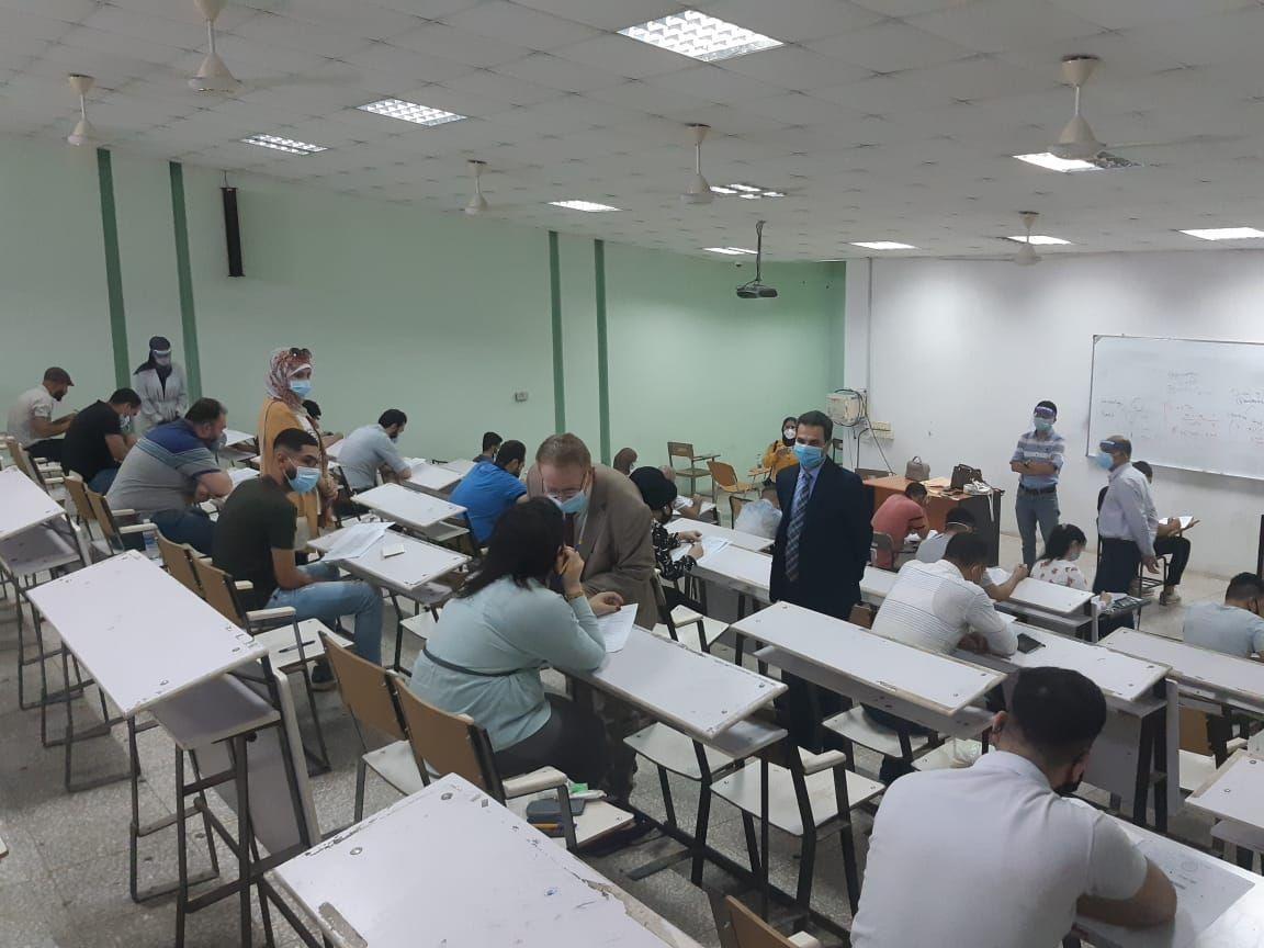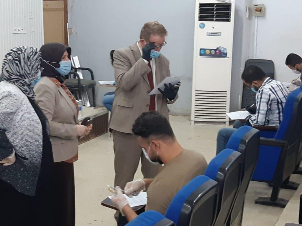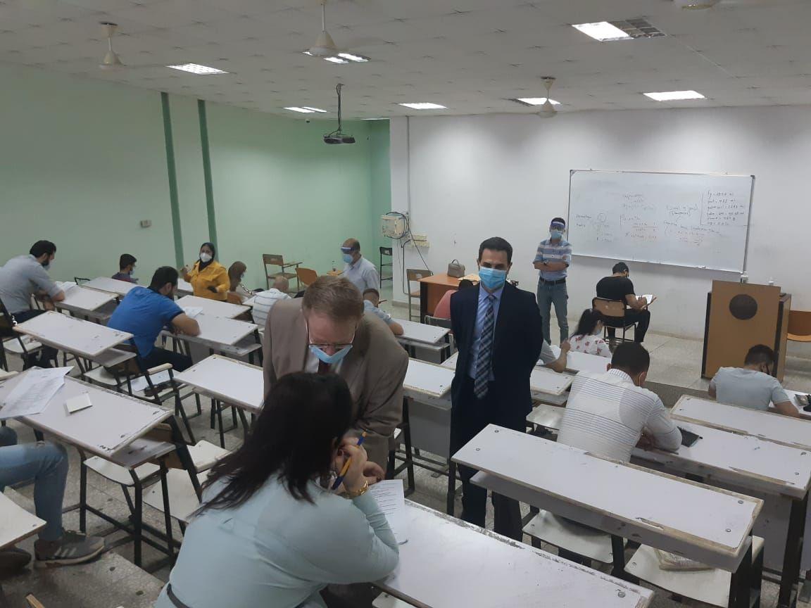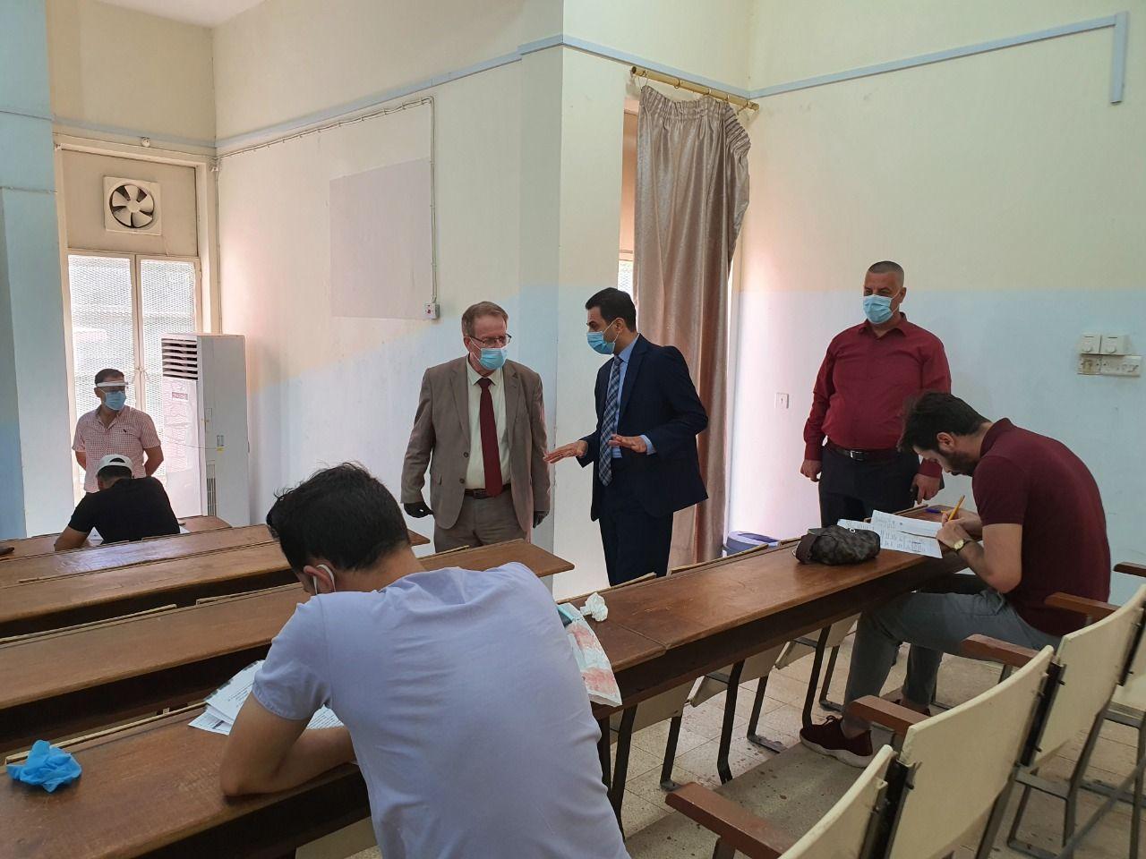 تفقد مساعد رئيس الجامعة للشؤون العلمية الاستاذ الدكتور عبد الكريم السامرائي سير امتحانات معادلة الشهادة للطلبة الدارسين خارج العراق في تخصصي طب الاسنان والصيدلة.