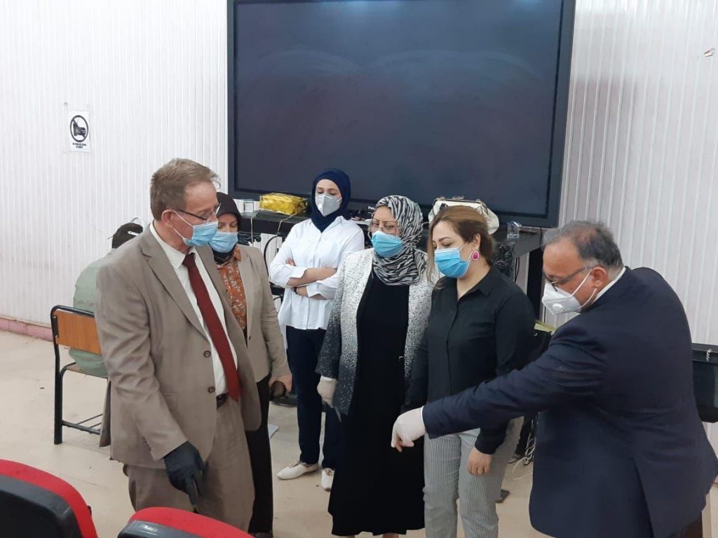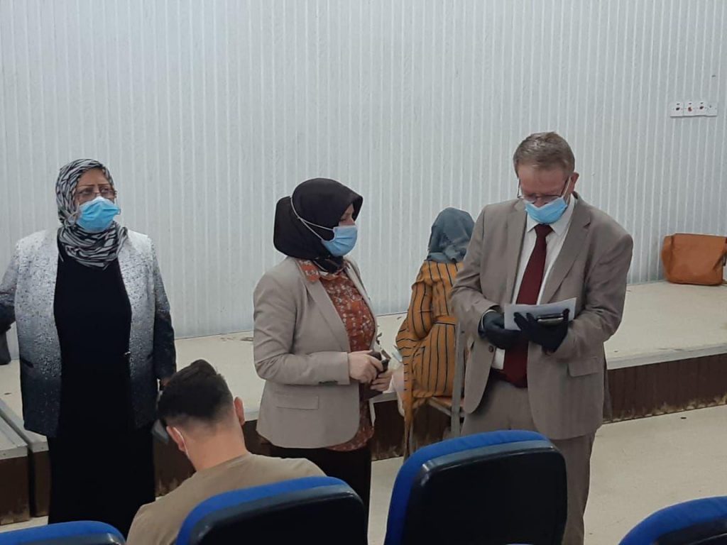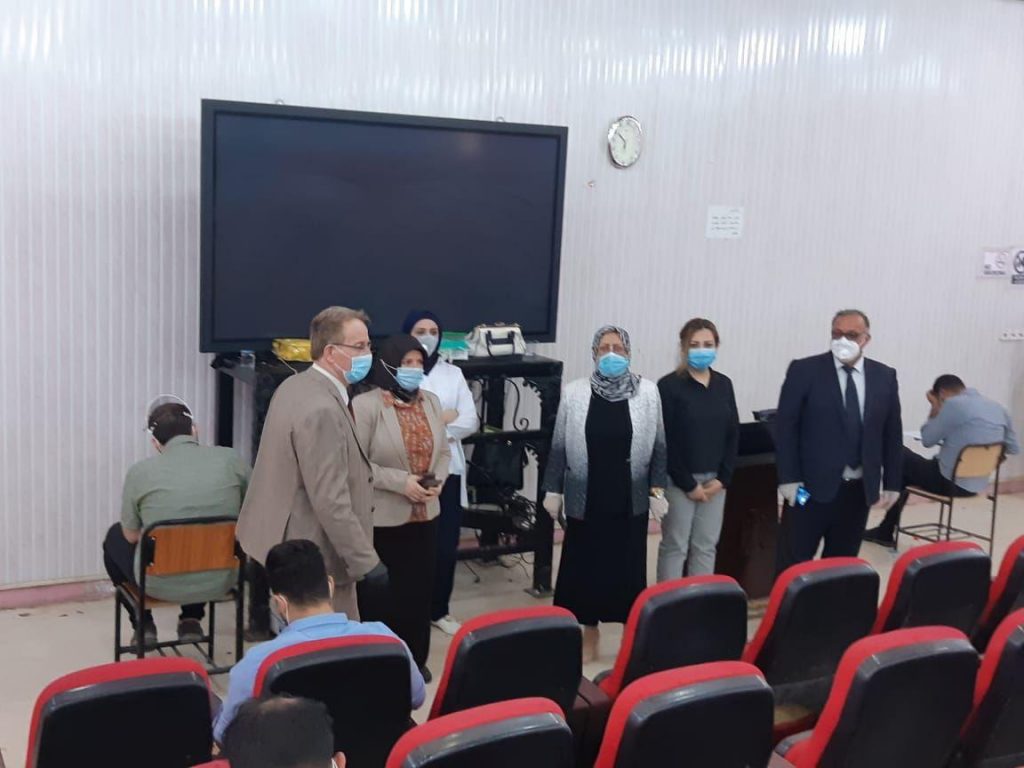 وفي السياق ذاته، تفقد مساعد رئيس الجامعة للشؤون العلمية كلية طب الاسنان، وكانت في استقباله عميد الكلية الاستاذ الدكتورة ندى الشيخ راضي، وتم زيارة القاعات الامتحانية للوقوف على آلية امتحان المعادلة وتذليل الصعوبات إن وجدت، في ظل اجواء صحية بعد تعفير القاعات والتأكد من سلامة الطلبة الوافدين وصحتهم قبيل اجراء الامتحان.
