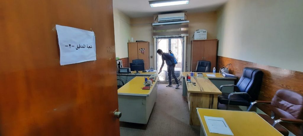 واضاف فالح انه تم استغلال العطل الرسمية وايام الحظر الشامل لاجراء عمليات التعفير والتعقيم والتنظيف لتهيئة اجواء صحية لاستقبال طلاب المجموعة الطبية وطلبة الدراسات العليا الذين سيؤدون امتحانات الفصل الاول مع منتصف شهر اذار الجاري.