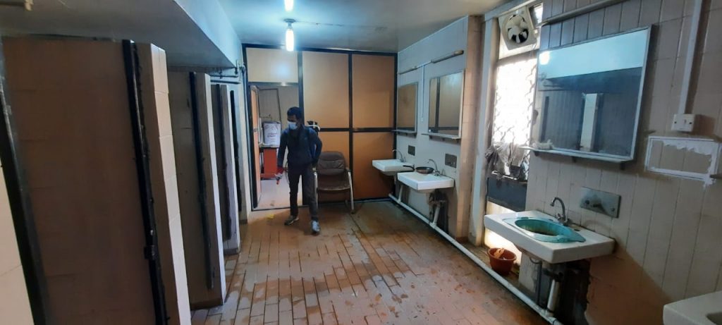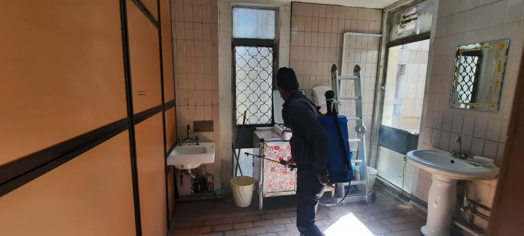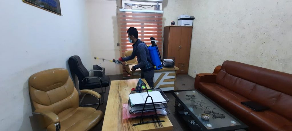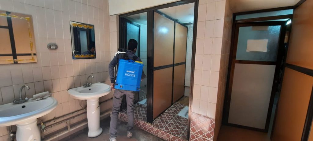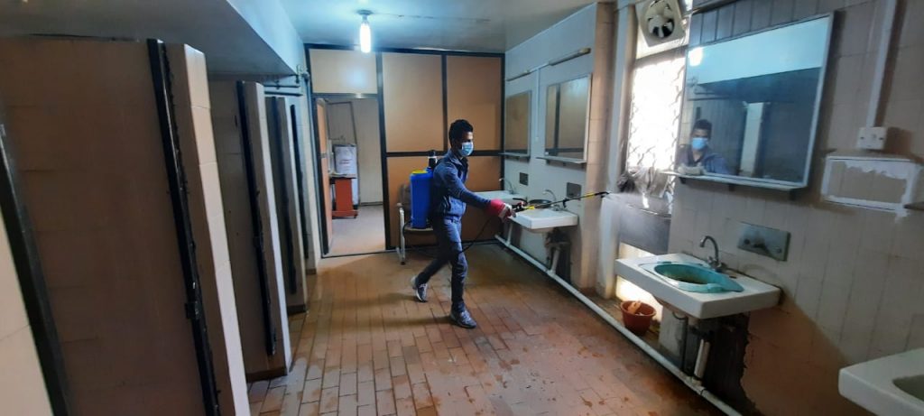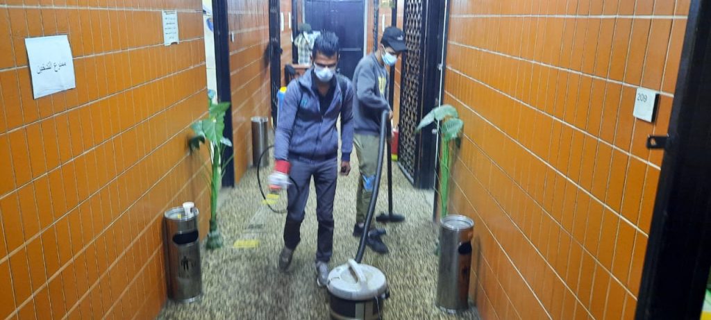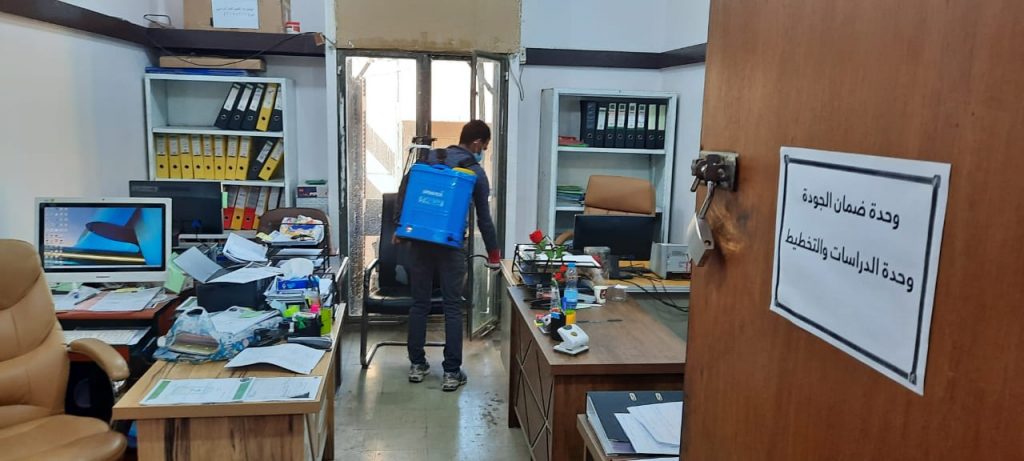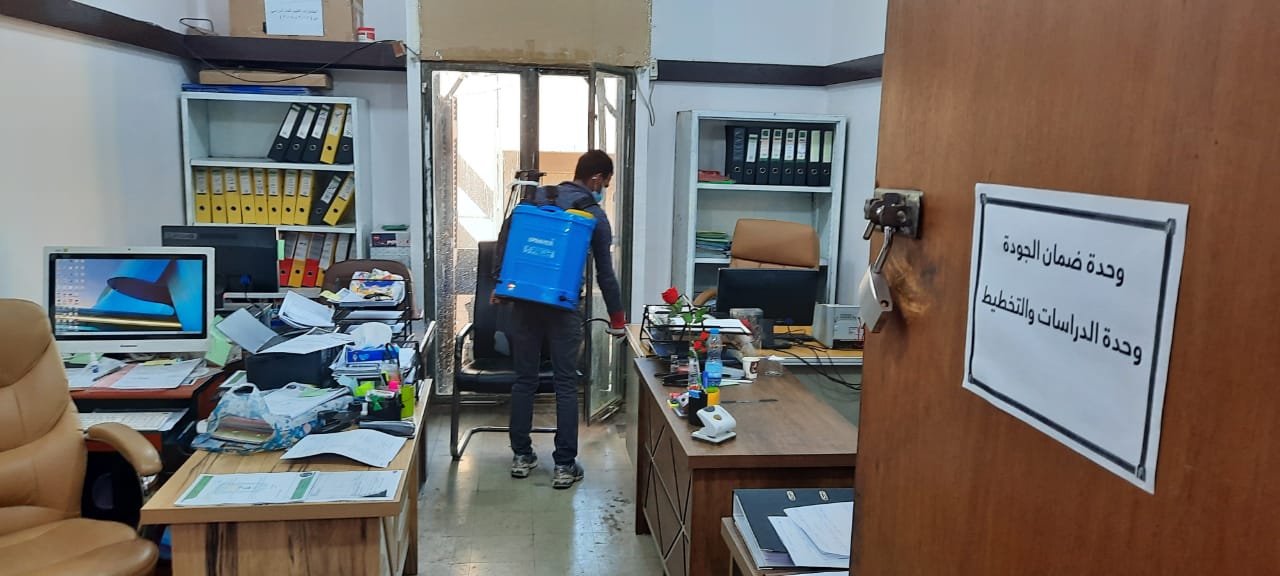 واكد الدكتور عمر فالح مدير قشم شؤون الاقسام الداخلية ان شعبة الخدمات في القسم استنفرت طاقاتها الخدمية والصحية في تعفير الاقسام والقاعات كافة، فضلا عن مجمعات الاقسام الداخلية، الى جانب تنظيف الاروقة والقاعات وغيرها من البنى التحتية للحفاظ على الصحة العامة والوقاية من اي عدوى بالتزامن مع تفشي الصنف الجديد من فيروس كورونا.