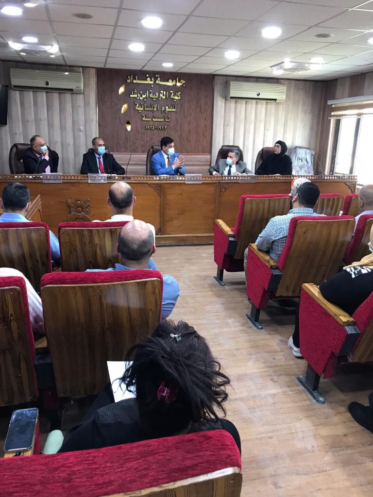عقدت كلية التربية ابن رشد للعلوم الانسانية بجامعة بغداد حلقةً نقاشيةً (سمنار) لطلبة الدبلوم العالي المعادل للماجستير وفق الاتفاقية المبرمة بين الكلية ومستشارية الأمن الوطني.