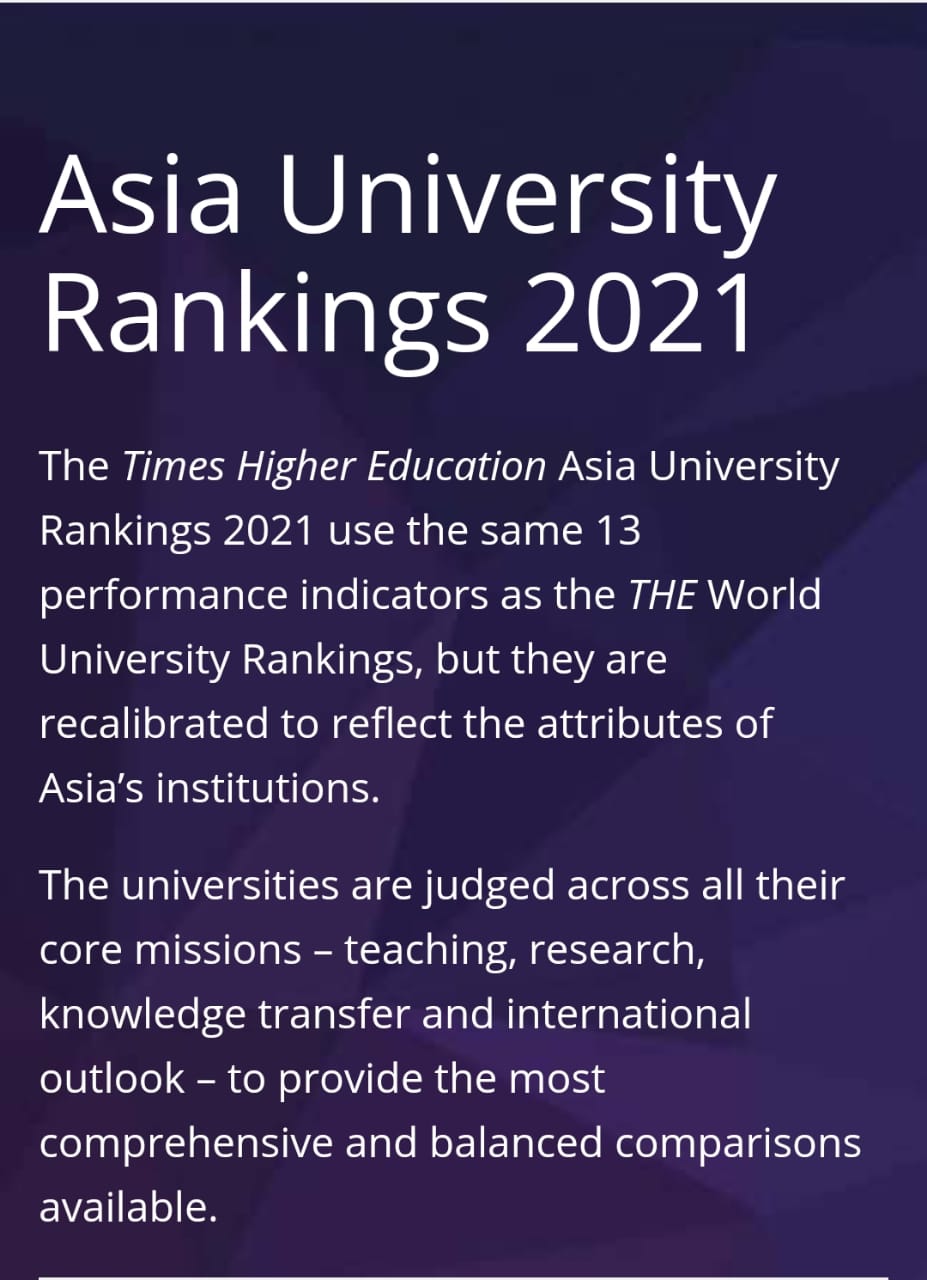 (The Times Higher Education Asia University Rankings 2021)