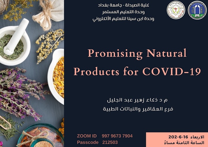 نظمت كلية الصيدلة بجامعة بغداد ورشة عمل الكترونية بعنوان (المنشطات الطبيعية) القتها المدرس ضحى عبد الصاحب الشماع التدريسية في فرع العقاقير والنباتات الطبية في الكلية عبر تطبيق zoom .