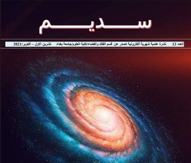 صدرت عن قسم الفلك والفضاء في كلية العلوم بجامعة بغداد النشرة العلمية الشهرية بعددها الثالث عشر الالكتروني لشهر تشرين اول اكتوبر عام 2021 بعنوان “سديم” المعنية بنشر الثقافة العلمية الفلكية وتنميتها وتطويرها بين فئات المجتمع العراقي .
